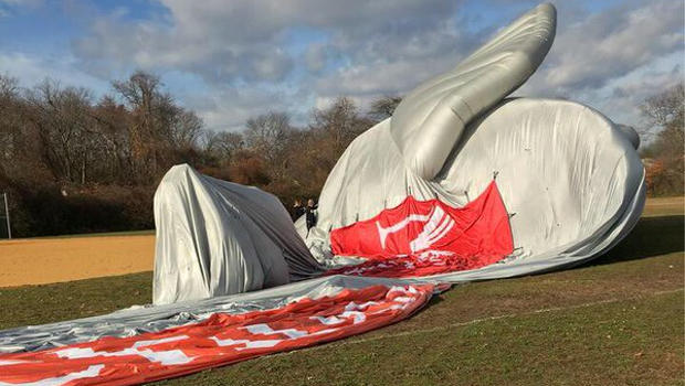 Trevor Thompson is the pilot of the blimp. He told some local people came running up and was trying to help him. They grabbed the nose lines of the blimp, and that made the landing great and smooth for him. He remained alone on the flight over Long Island. The blimp is operated by an advertising company.